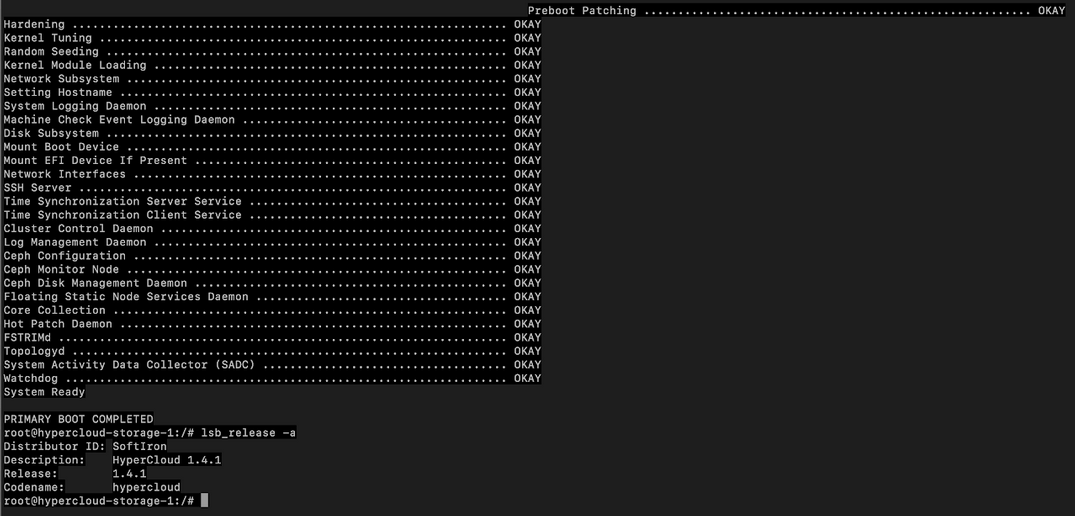 • Wait for the boot to complete and HyperCloud to perform system checks.