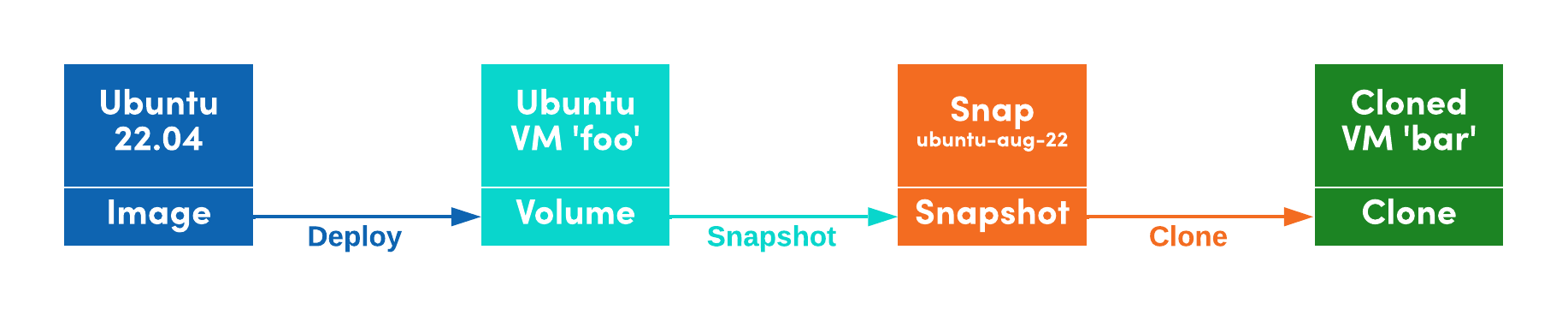 Thanks to COW clones, the storage layer enables guests to take snapshots at regular intervals while consuming relatively little additional storage utilization (in some cases, close to none). While this functions as a type of resilient backup system, snapshots can also be cloned into newly provisioned guests. While the snapshots themselves are immutable, the clones of the snapshots become writable volumes in their own right - and again are COW clones.