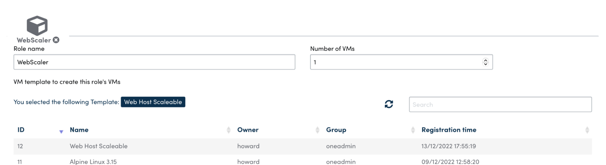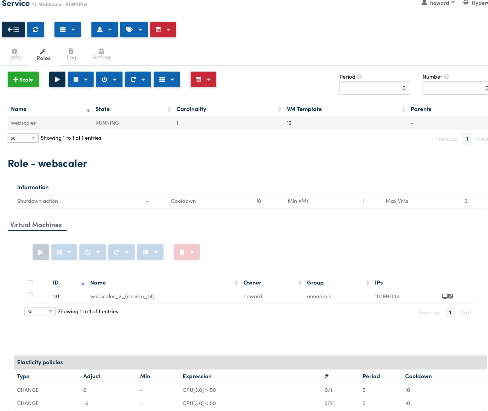 In Instances -> VMs you should see a single instance of the VM running with a name similar to webscaler_2_(service_14); furthermore, you will find, under Instances -> Services, the new Service initializing or in the Running State.