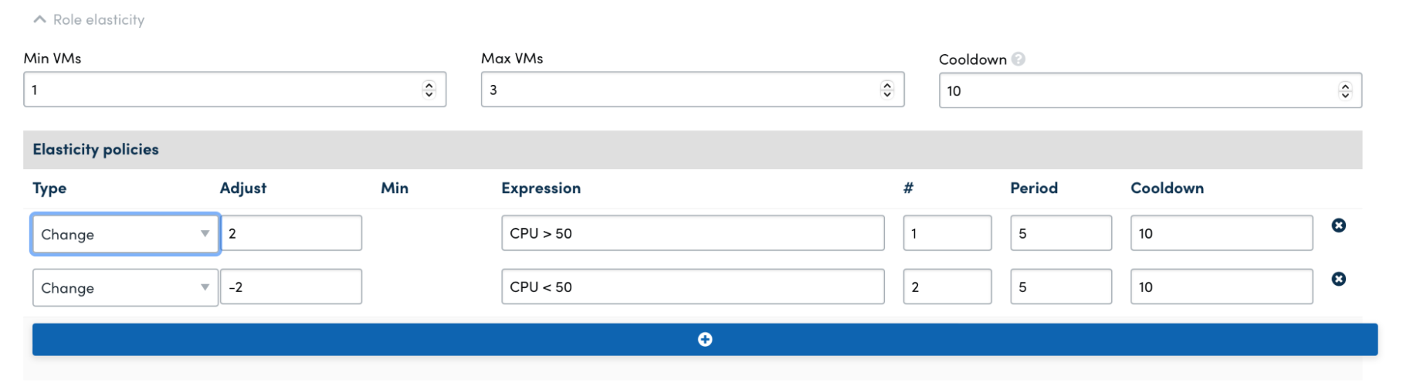 • Expand the Role elasticity and set parameters