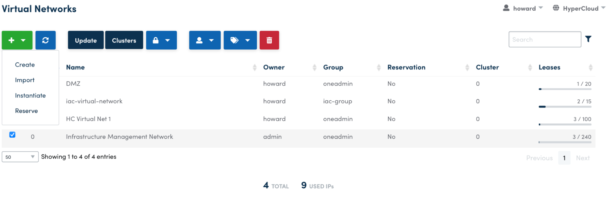 • Put a tick in the box next to the network you want to use, click the green dropdown button, and select 'Reserve'.