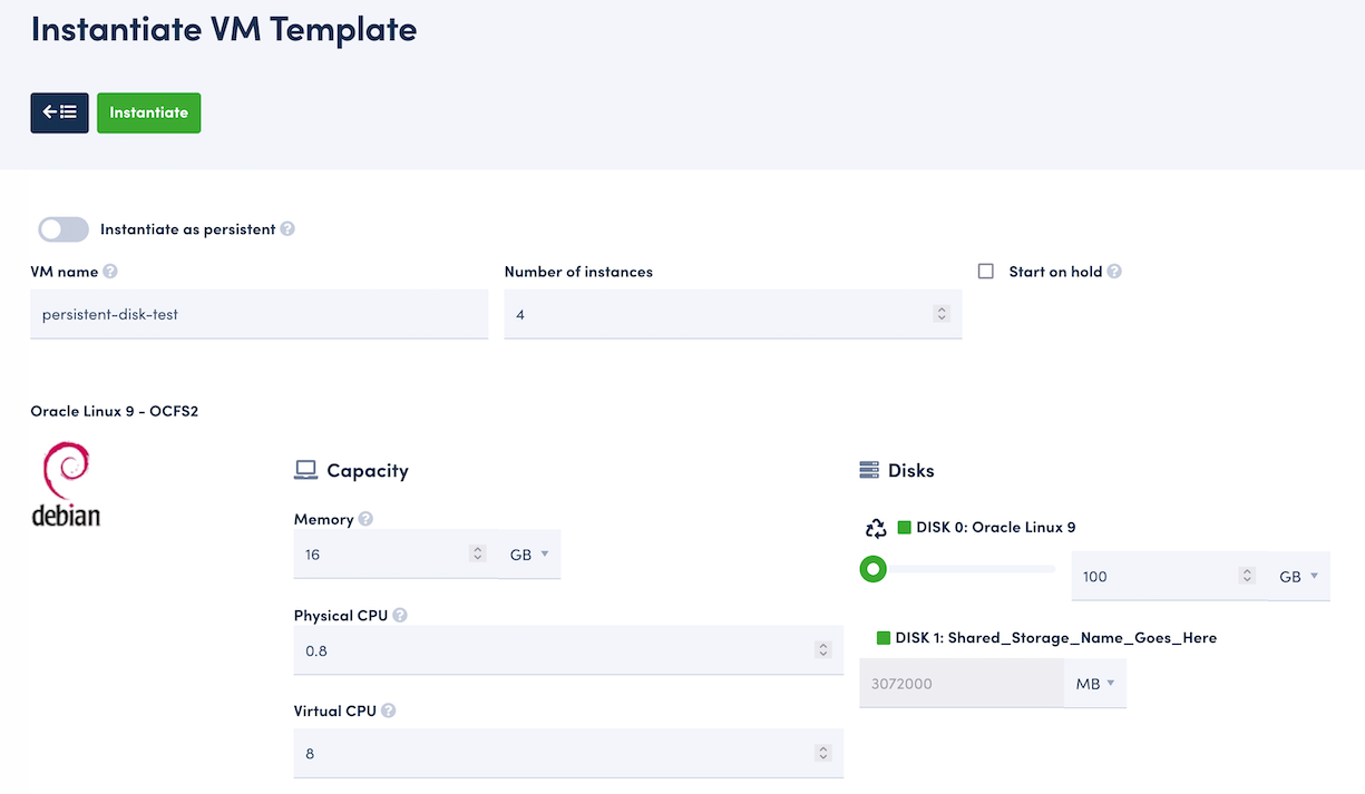With the disk added to the VM Template, several copies of the VM can be instantiated and all will share the persistent block storage.