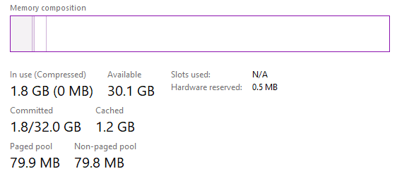 Back in Windows we can see in Task Manager that 32GB is now available out of the total of 32GB.