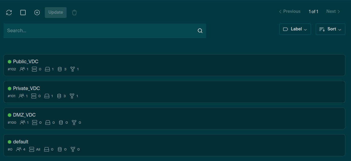 Once the Groups, Users, and Virtual Networks have been set up, the VDCs can be created. The instructions to create the DMZ VDC are detailed below: