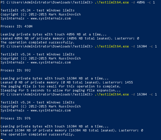 We can verify the allocatable RAM using the Windows SysInternals tool TestLimit.
