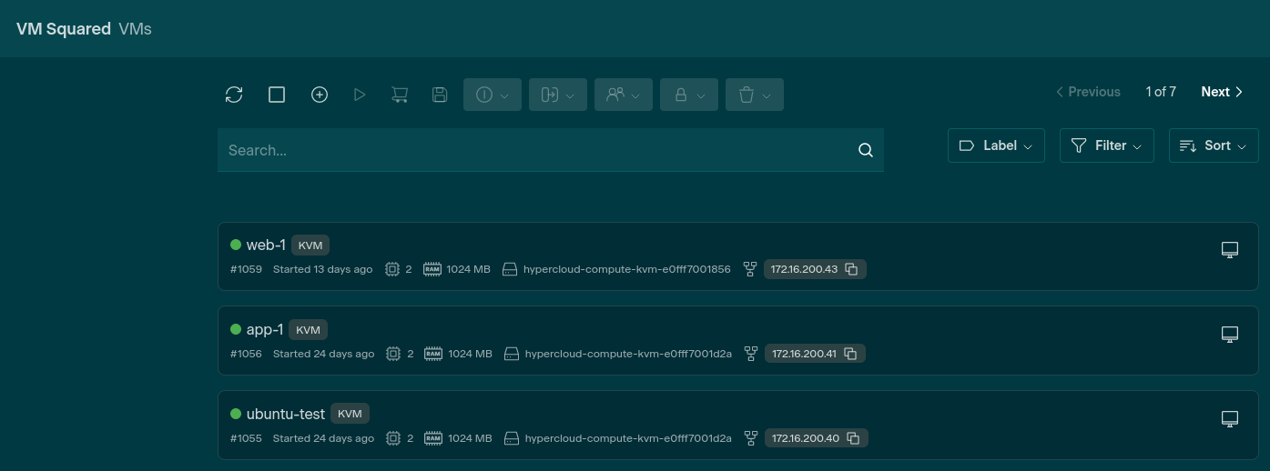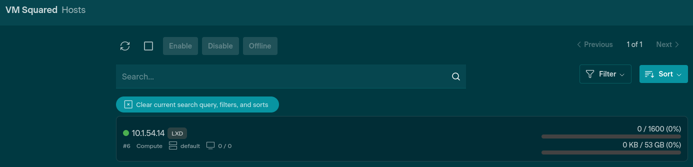 Virtual machines (VMs) are constructs within a cluster that utilize resources and the established infrastructure to carry out tasks and provide users with tools to accomplish these tasks. The resources necessary to instantiate a VM are CPU and memory. Hosts represent these resources and give a quick overview of the Cluster ID, the running VMs, the allocated CPU and memory.