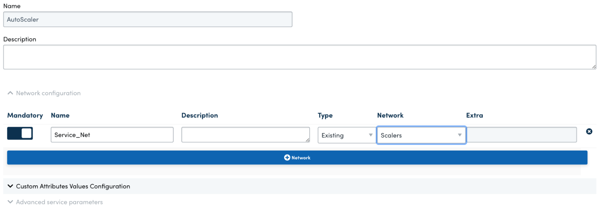 Expand the Network Configuration and add a Mandatory Network to your service network. Use the IP Address Reservation created above