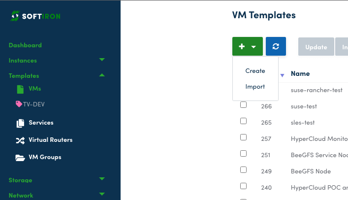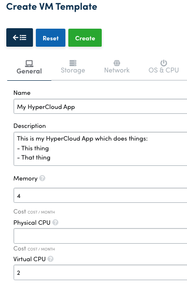 In HyperCloud, go to Templates > VMs, and Create a new Template.