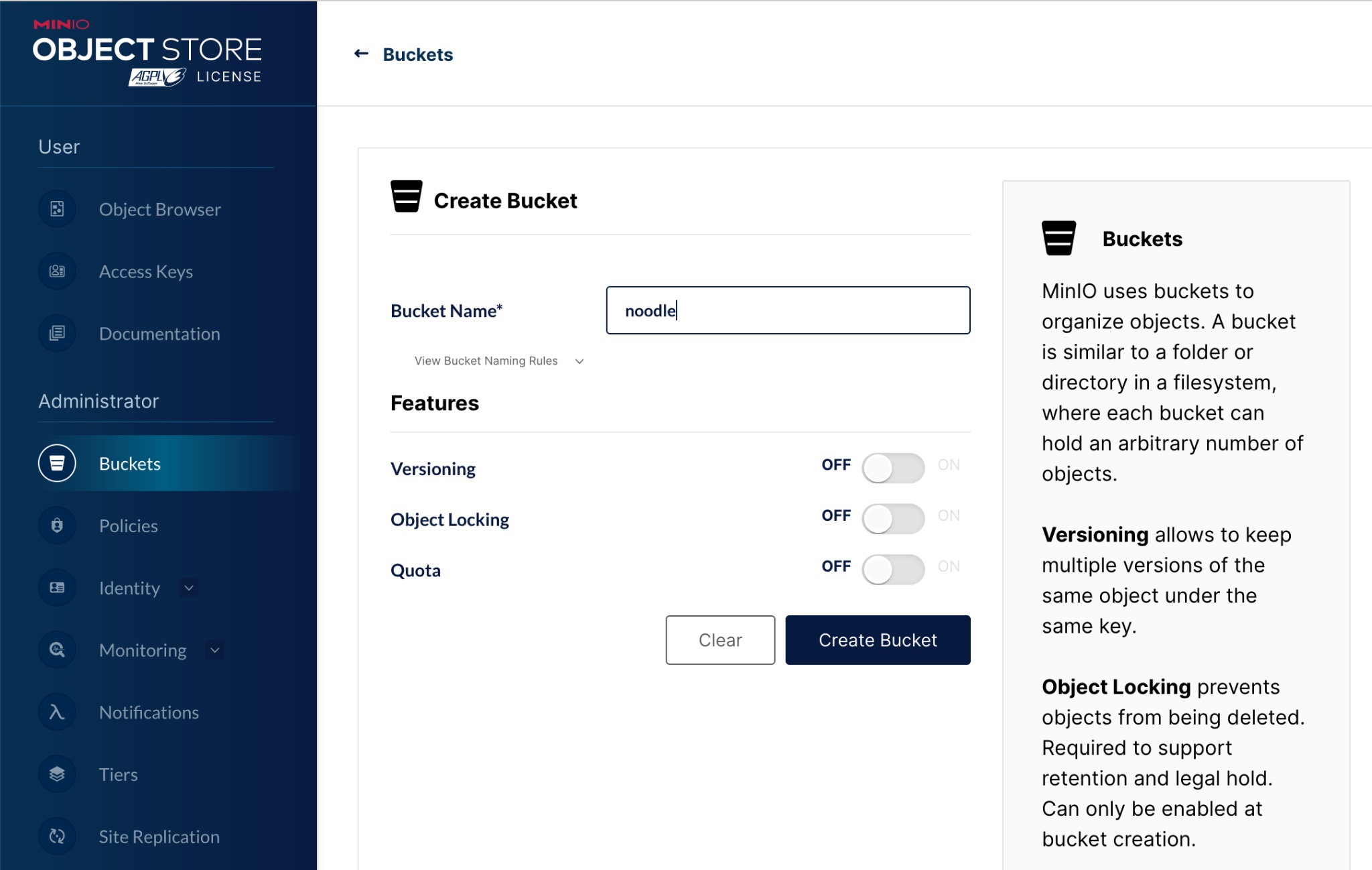 Create a bucket for the user