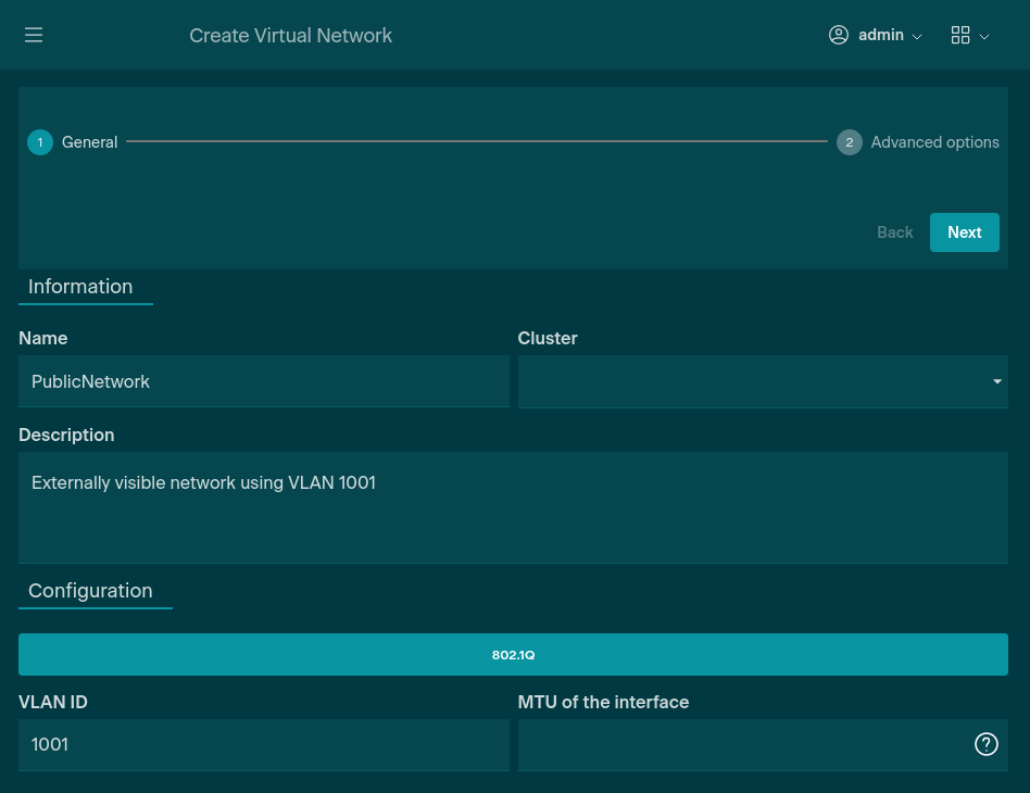 Remember to configure switch Ports or LACP groups with the matching VLAN ID before using the Virtual Network.