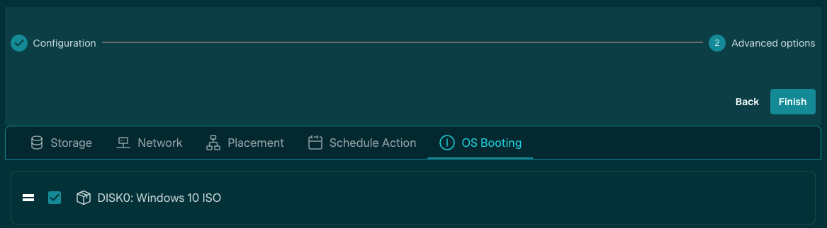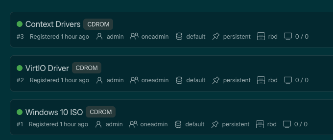 The ISO (CD-ROM), VirtIO, and Contextualization Images can be removed as disks under the Storage Tab within the VM Template, leaving the new OS Image (formerly Disk 3, generic storage datablock) as the only disk available to the Template, and the success can be tested by instantiating a new VM with the updated Template.
