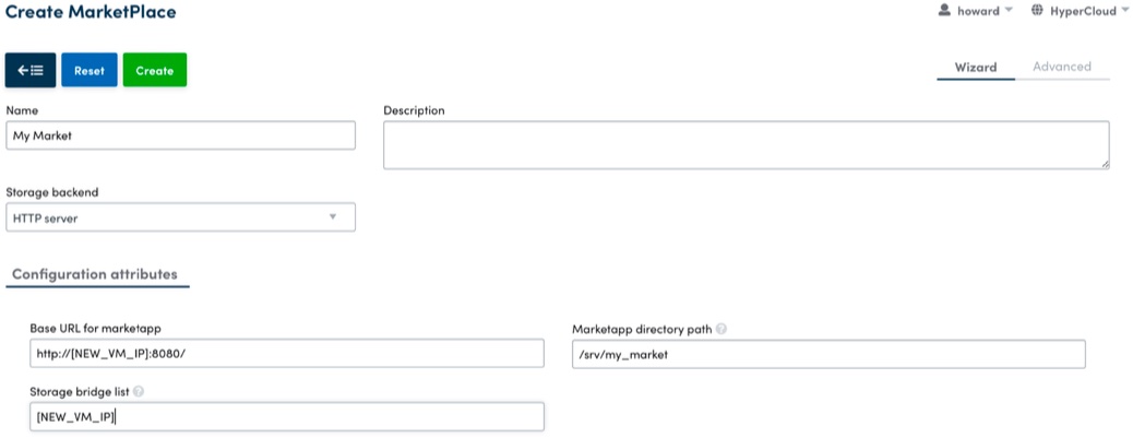 - In the HyperCloud management GUI browse to 'Storage' -> 'Marketplaces'
